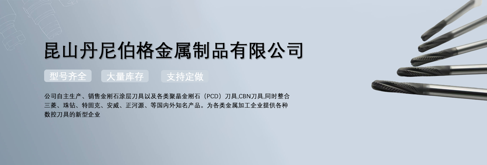昆山丹尼伯格金屬制品有限公司是一家專注于數控非標刀具、高硬度刀具于一體的金屬切削工具的企業。公司自主生產、銷售金剛石涂層刀具以及各類聚晶金剛石(PCD)刀具,CBN刀具,同時整合三菱、珠鉆、特固克、安威、正河源、等國內外知名產品。為各類金屬加工企業提供各種數控刀具的新型企業。